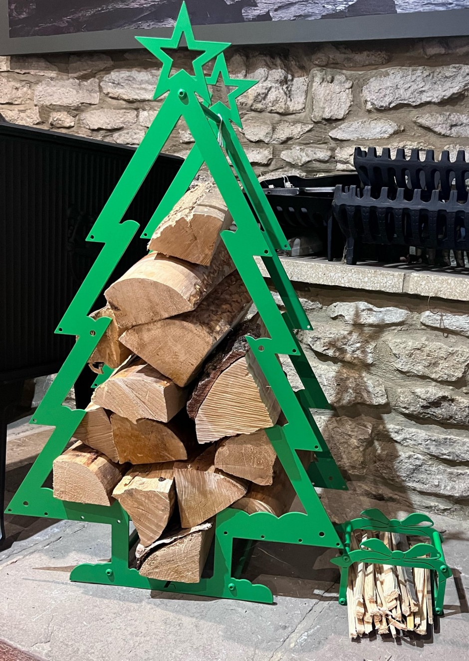 Christmas Tree Log Holder with Kindling Present